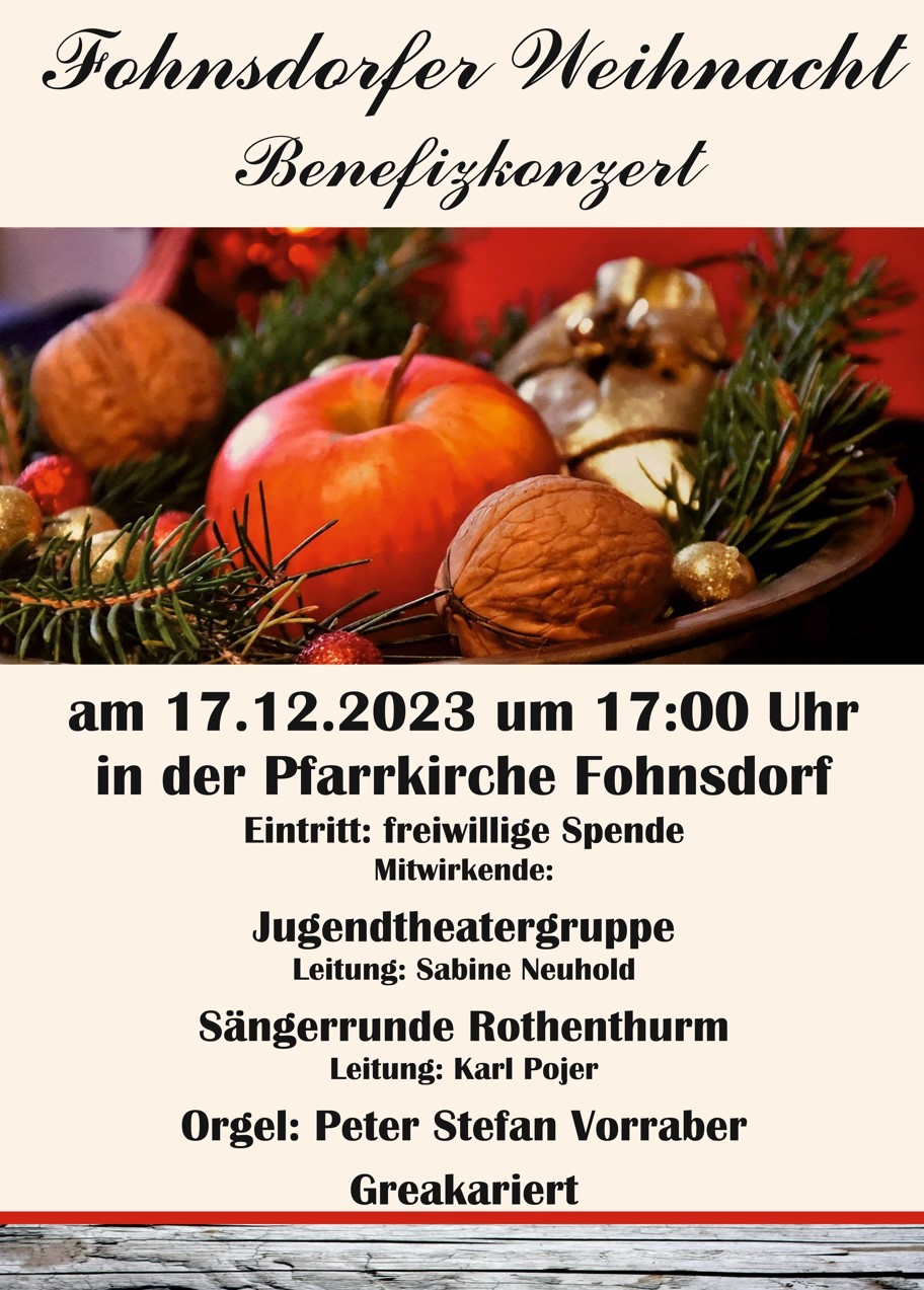 am 17.12.2023 um 17:00 Uhr in der Pfarrkirche Fohnsdorf