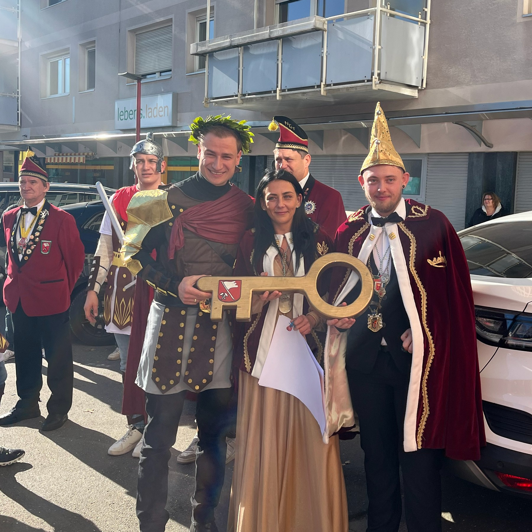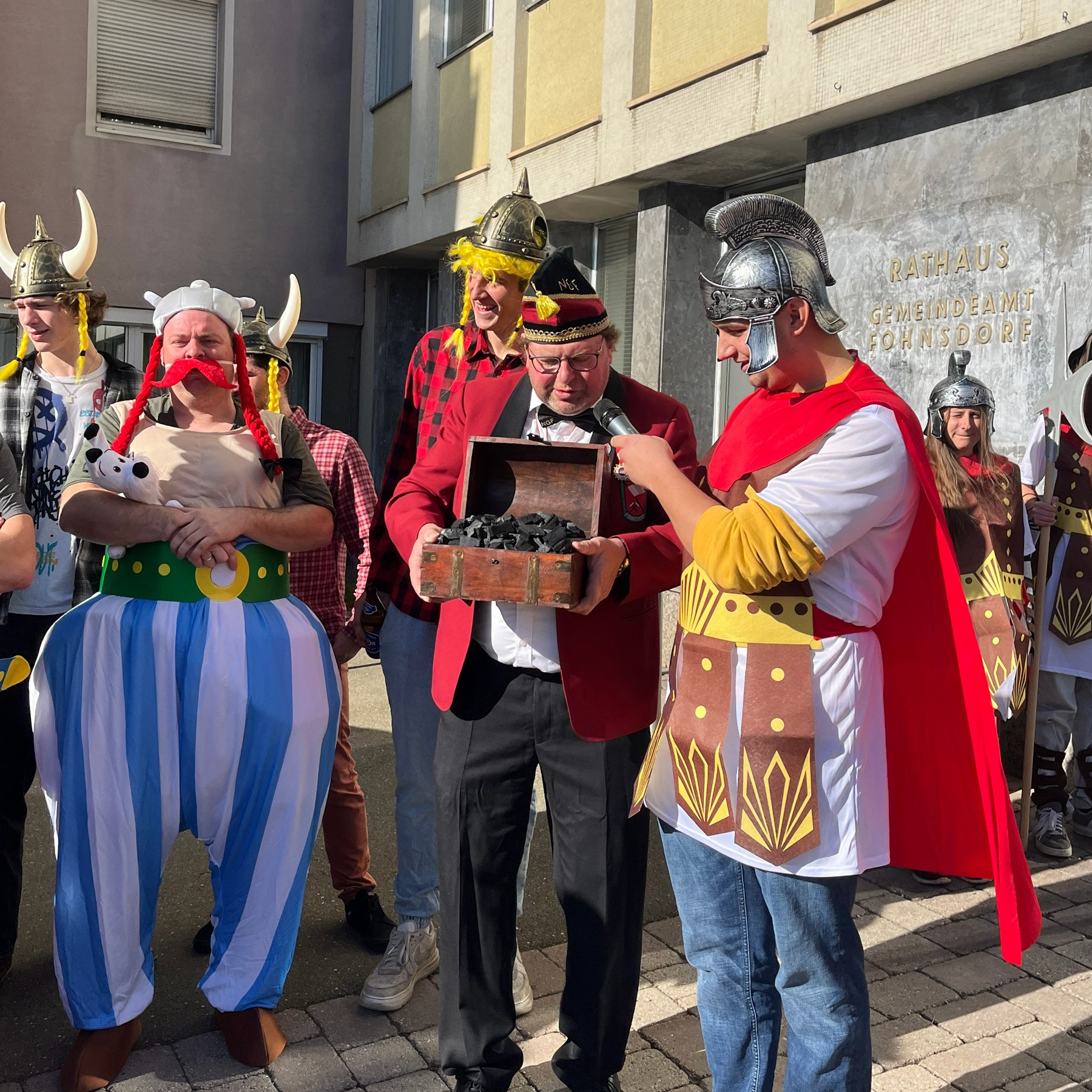 Unter dem diesjährigen Motto Asterix und Obelix sind die närrischen Gallier los gezogen, um den Schlüssel zum Amtshaus zu erobern. Natürlich mussten dabei – ganz im Sinne der Bürokratie – auch einige verwaltungstechnische Formalitäten erfüllt werden, bevor der Schlüssel offiziell übergeben werden durfte.